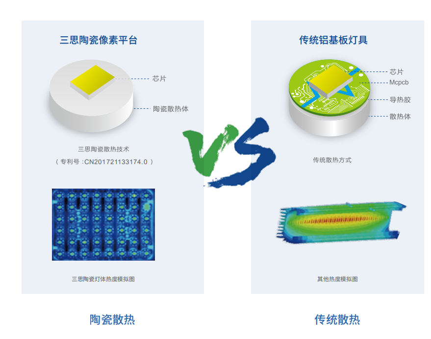 由於獨立陶瓷像素發光體已經形成自(zì)封裝、自防水、自配光,因此由點到線再(zài)到(dào)麵的模塊化方案,可以使整燈做到鏤空式結構設計(jì),形成(chéng)“獨立(lì)散熱體(tǐ)散熱+空氣(qì)自對流散熱”的雙(shuāng)重散熱效應。
