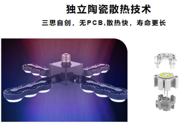 采用1600℃℃高溫燒結的優質陶瓷作(zuò)為散熱體,散熱良好且彌(mí)補了傳統鋁基板漏(lòu)電隱患。外觀鏤空設計,增加自然對流效率,通(tōng)風散(sàn)熱光衰小,性能穩定。