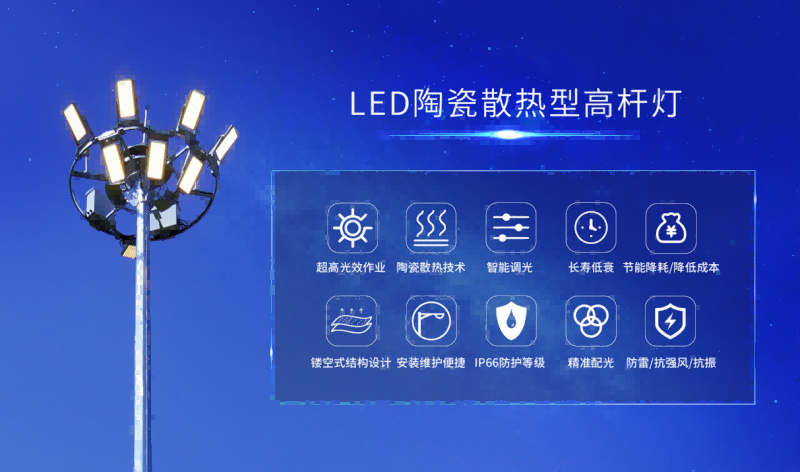 摘要:隨著照明技術不斷的發展與進步,對於“空中(zhōng)照明”——超15米高杆燈產品的要求也越來(lái)越高。高杆燈可以滿足城市廣(guǎng)場、車站、港口碼頭、貨場、機場、體育場等場所的照明應(yīng)用,作為“空中照明”核心應用產品,其對於夜間(jiān)照明安全保障有著非常重(chóng)要的作用。