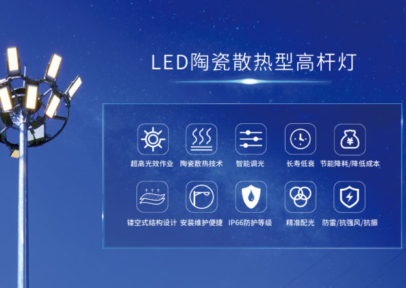 查看詳細 >>隨著(zhe)照明技術不斷的發展(zhǎn)與進步,對於“空中照明”——超15米高杆燈產品(pǐn)的要求也越來越高。高杆燈可以(yǐ)滿足城市廣場、車站、港口碼頭、貨場、機場、體育場等場所的照明應用,作為“空中照明”核心應用產品,其對於夜間照明安全保障有著非(fēi)常重要的作用。