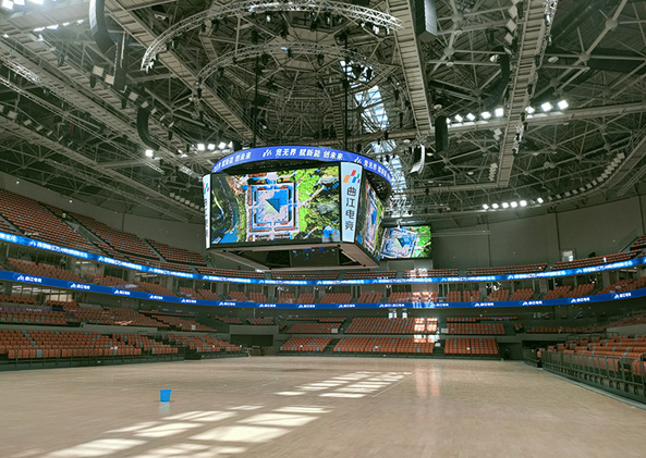 亮度和對(duì)比度:體育館通常會有較強的環境光線,因此(cǐ)LED顯示屏需(xū)要具備較高的亮度和(hé)對(duì)比度,以應對明亮(liàng)的(de)環境,確保圖像清晰可見。